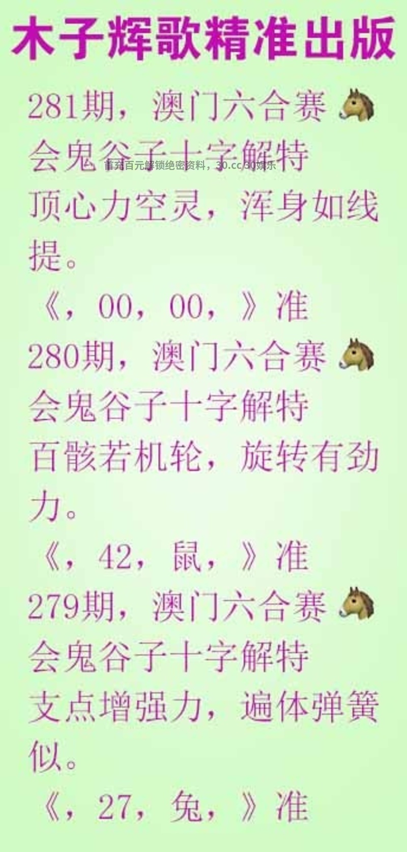 284期:♣天地中特♣天天天♣开:發00中 285期:♣天地中特♣更新中♣开:發00中 286期:♣天地中特♣更新中♣开:發00中 天肖:牛猪猴马龙兔 💥 地肖:虎鼠狗鸡羊蛇 庄家怕了,密料大放送!(9715888.com) 澳门木子辉歌《五段中特》9715888.com