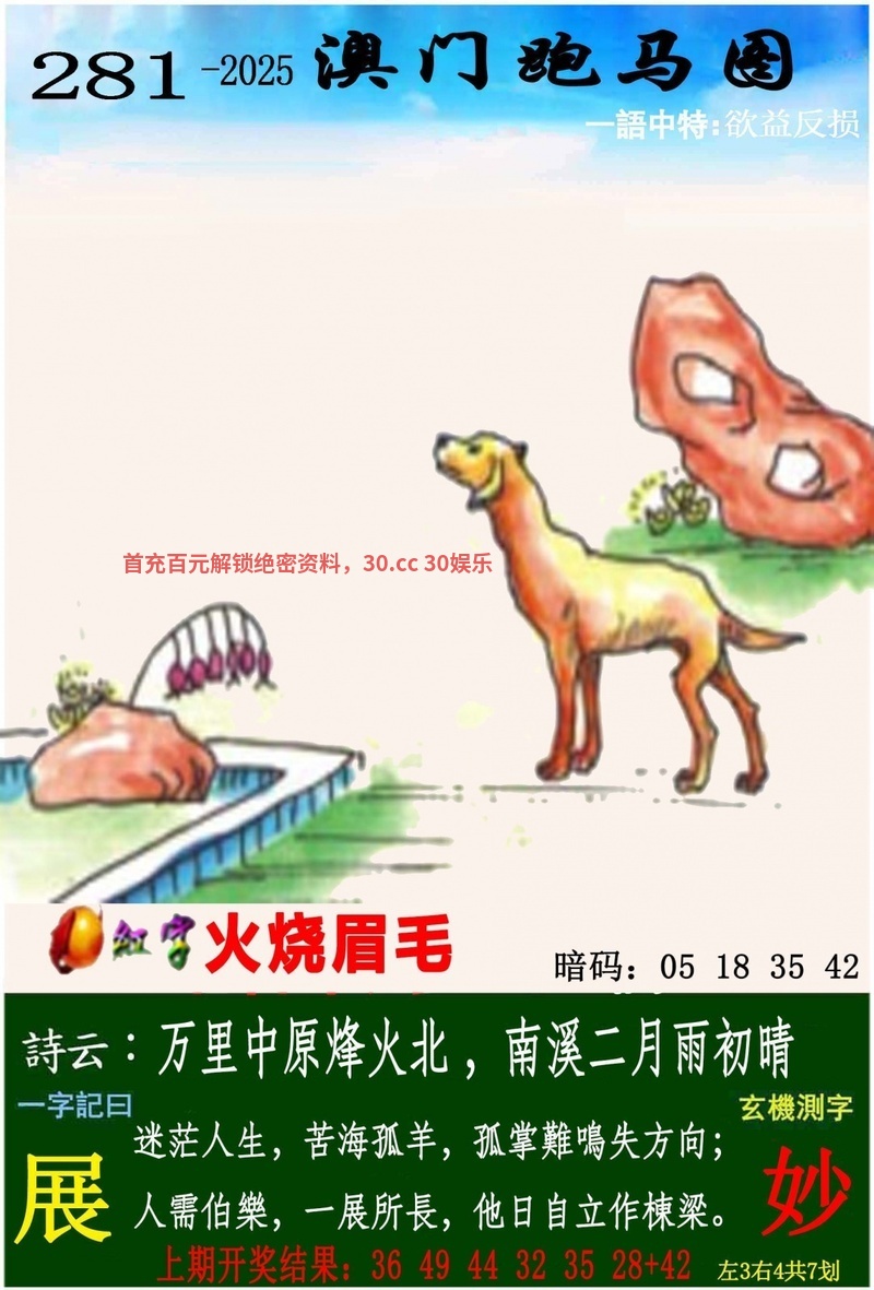 281期:绝杀两尾☠5尾9尾☠开:羊47准
