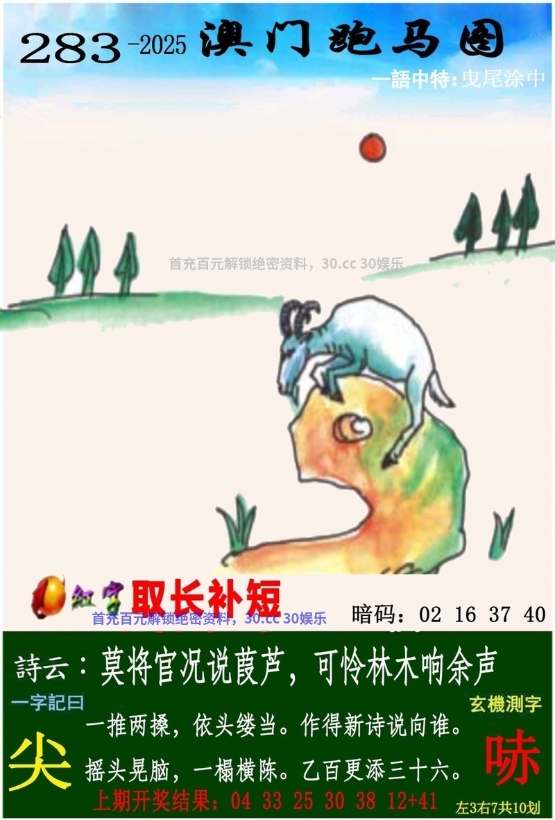 283期:绝杀三肖★虎猴鸡★开:鸡45